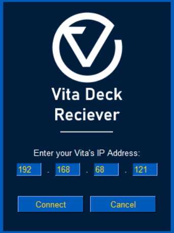 - Use the Receiver.exe app to link your Vita and PC using the IP address